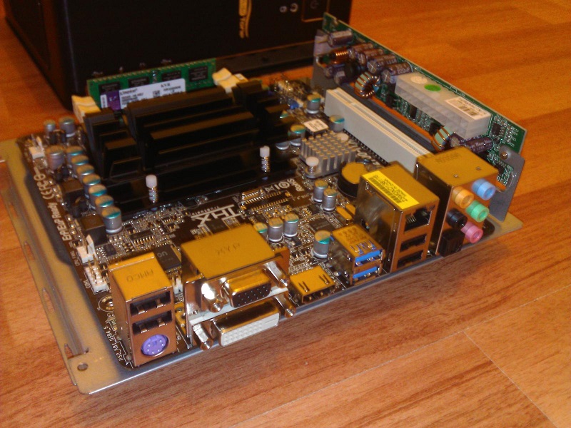 Основой послужила мат. плата ASRock AD2700-ITX, с предустановленным процессором Intel D2700 (2 ядра, 2,13 GHz) и пассивным охлаждением.