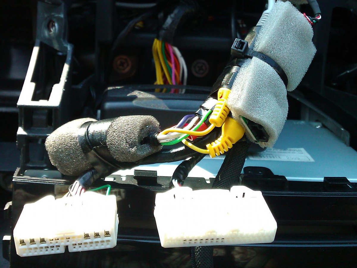 Для унификации, все подключения Аудио и Видео выполнил на стандартных RCA разъемах (тюльпан), впаяв их в штатную проводку и использовав автомобильные межблочные кабели.