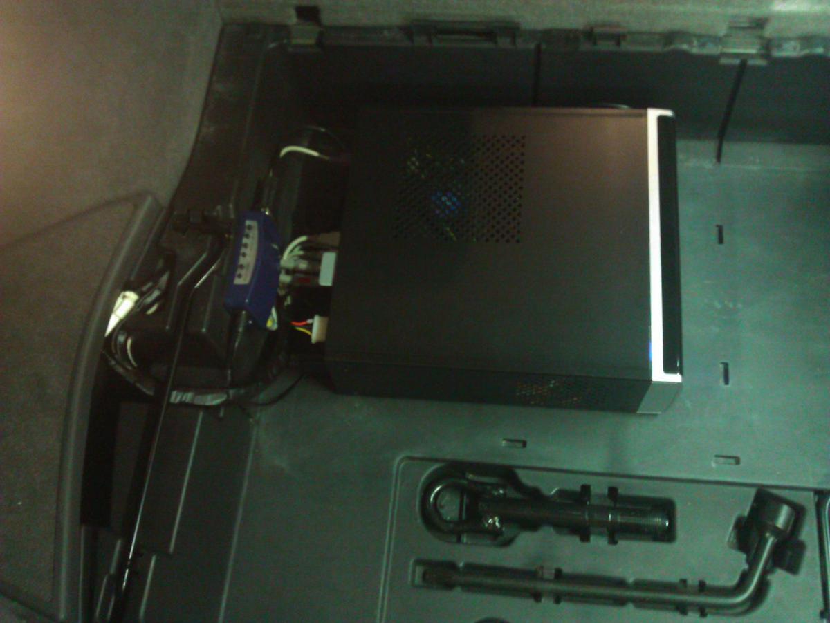 Разместил в багажнике, в пластиковом коробе, закрывающем запаску. Системник крепится на застежках "липучках", что позволяет его быстро и легко снять/поставить в течение минуты.
