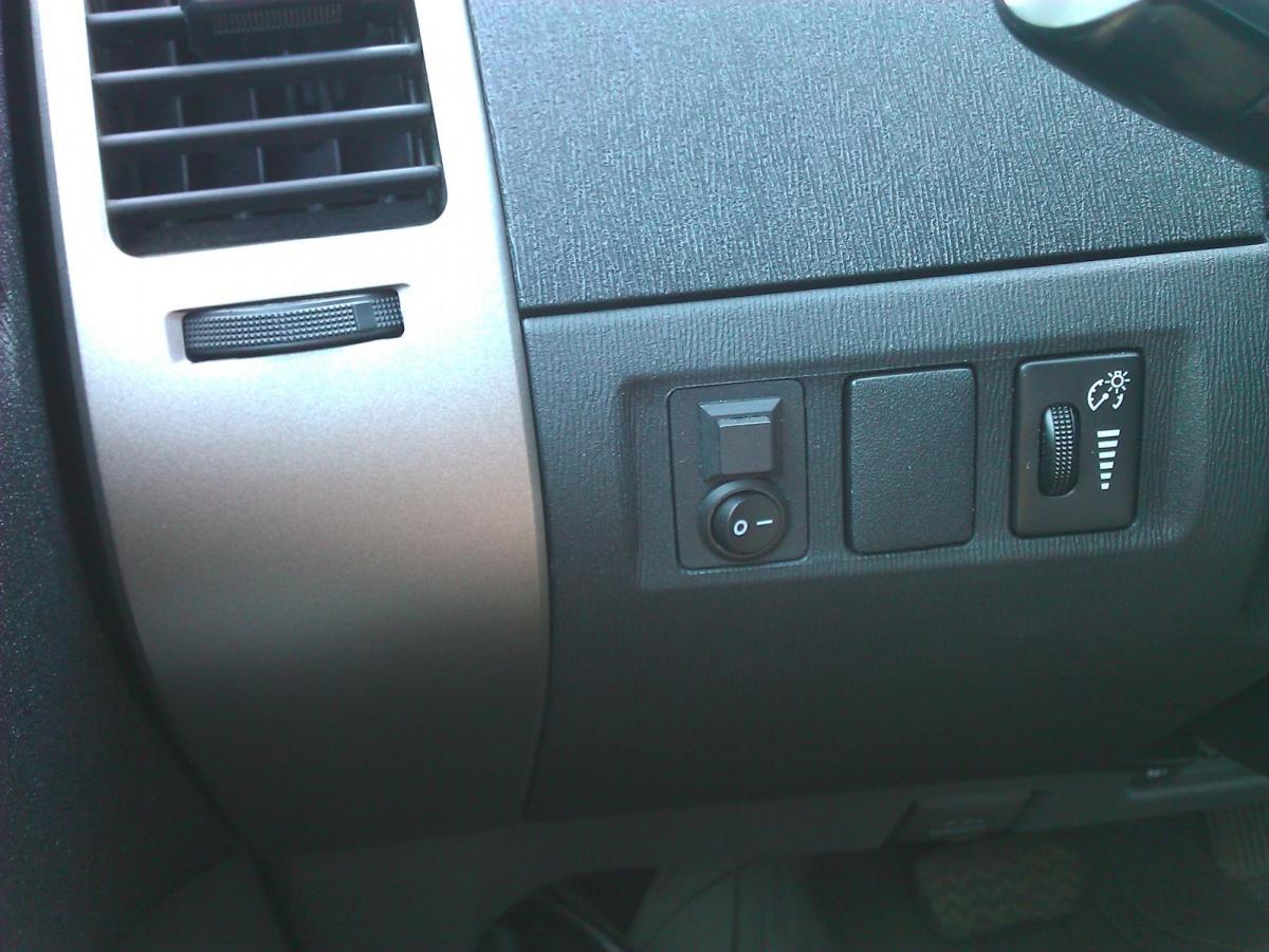 Для переключения мультидисплея в режим CarPC я использовал клавишный переключатель (SW 1). Для принудительного включения/выключения PC поставил кнопку без фиксации. Установил в свободную заглушку на панели.