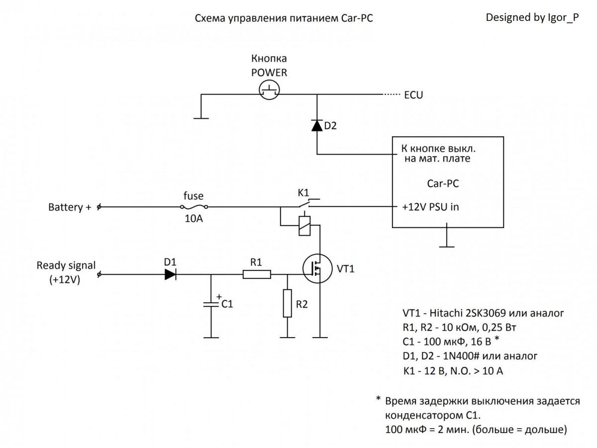 M2-ATX удобнее и намного проще в подключении, и рассчитан на более жесткие условия эксплуатации, т.к. был создан для классических а/м с учетом их особенностей. Но в моем случае, изначально уже была придумана схема с использованием простого, не интеллектуального БП, проверенная временем.