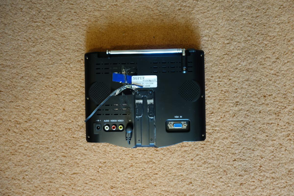 Собственно ТВ (в т.ч. встроенная антенна), VGA и AV входы. Дополнительный провод для 12V. Естественно, блок питания от 220V