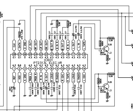 Попробуй подключится к любому из входов через эл.конденсатор, например L.Tape и R.Tape Вложение 18866