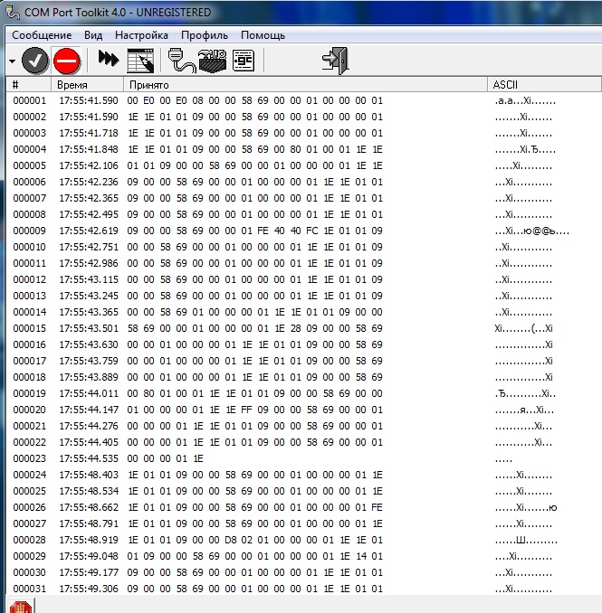 Красным идентификаторы (30), синим не правильные данные, вместо первого 255, должен быть ноль.