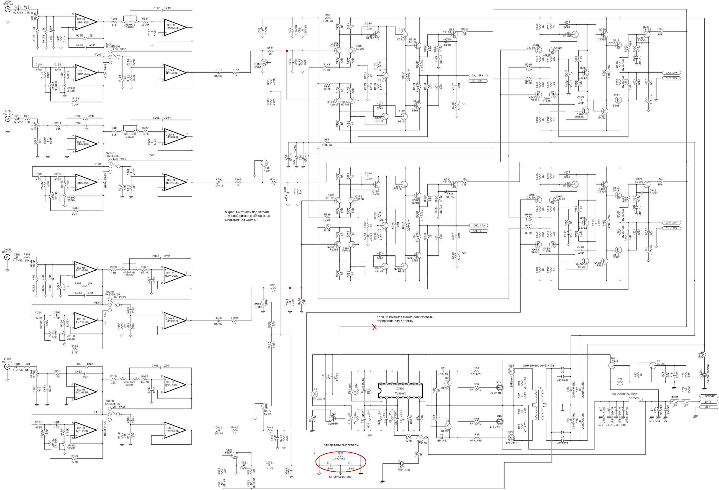 блуждающих токов не должно быть. но расмотрев внимательней я нашел одну деталь которая соединяет преобразователь и усилитель. это резистор и два конденсатора возле него.он соединяет минус преобразователя и среднюю точку питания усилителя. недолго думая разобрал усилитель выпаял одну ножку этого резистора и конденсаторах. убрал мад глю. и тишина. включаю трек и наслаждаюсь проделанной работой без надодливых шумов. поизучав детальней схему . я понял что звуковой сигнал проходит через несколько операционных усилителей не самого лучшего качества. на фронт сигнал пустил минуя их . непосредственно на сам усилитель. мощности звуковой карты хватило его раскачать. звук стал более объемным и детальным.