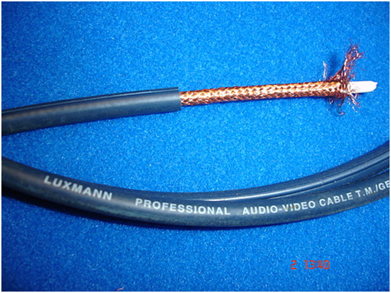 На этой фотке образец кабеля с не очень плотной оплеткой навитой из тонких медных проволок в одну сторону с алюминиевой фольгой под ним и одной центральной жилкой. В более простом варианте фольга отсутствует и это практически самый плохой и распространенный кабель. Часто применяется в готовых шнурках с пластиковыми тюльпанами. С точки зрения помехозащишенности-минимальная.. С фольгой-получше.