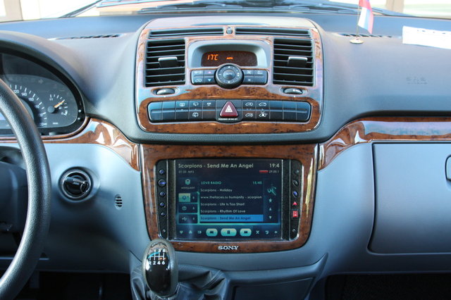 Первый, и самый трудный, на мой взгляд, этап - инсталляция монитора, и в том числе изготовление новой рамки. Первоначально консоль, где располагалось радио и предполагалось вместо него установить монитор, выглядела вот так.