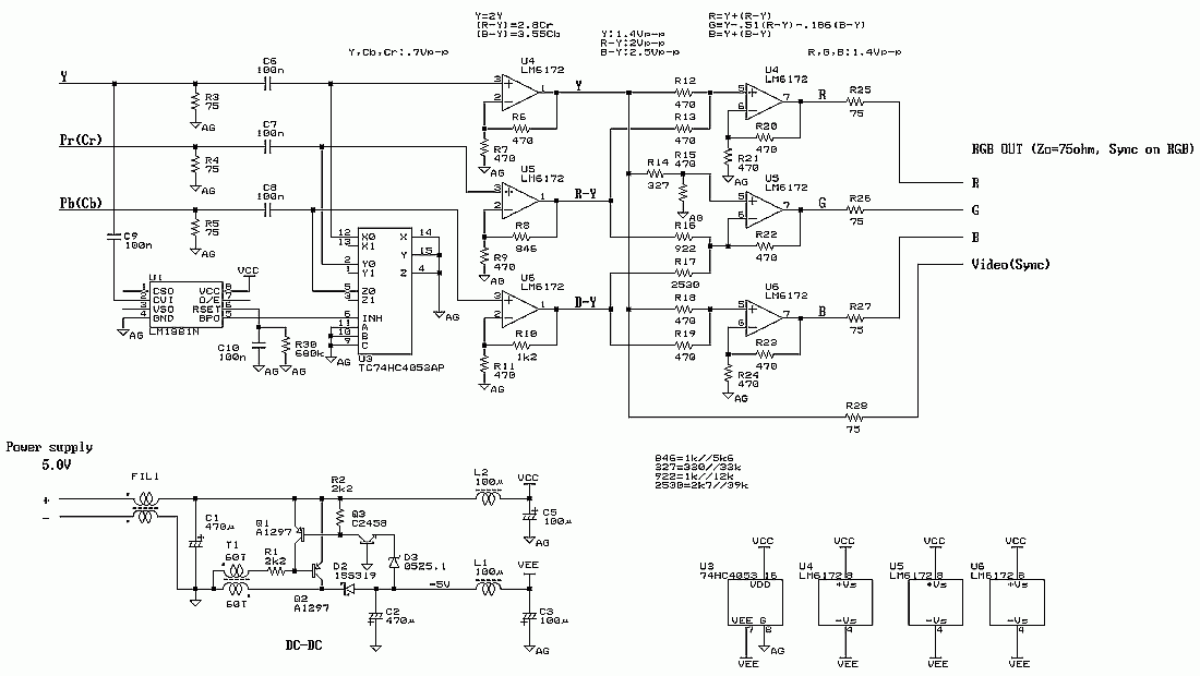 Если получить RGBs то тогда держи схему декодера из компонентного в RGB