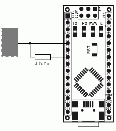 В приведеном ниже примере, общий является 2-ой пин Arduino