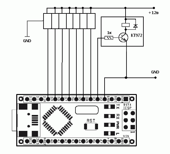 Исходник разведенной платы на микросхеме ULN2003 от ASSAD. Лучше применить микросхему ULN2803 так как у нее 8 ключей