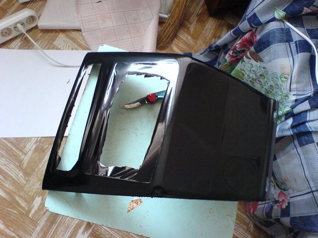 - после предстояло вырезать проём под пепельницу и самое сложное:под разъём прикуривателя