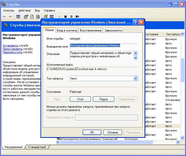 Если Centrafuse не может найти лицензию нажмите кнопку Пуск, Выполнить и наберите "services.msc". Найдите Инструментарий управления Windows и убедитесь, что он работает и установлен автоматический запуск.