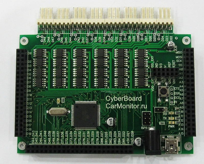 Начну понемногу рассказывать что эта плата из себя представляет. CyberBoard полностью программно и аппаратно совместим с Arduino Mega.