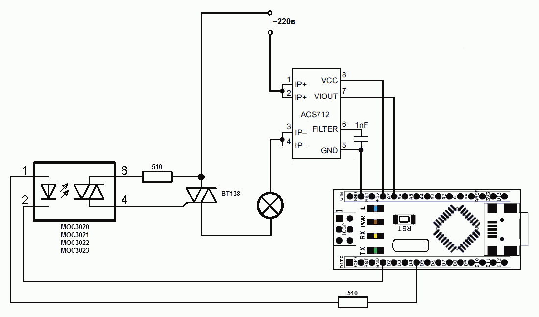 Если требуется только измерять ток (для того чтобы высчитать мощность), то МОС и симистор можно убрать, а подключение датчика тока к ардуине оставить как есть?