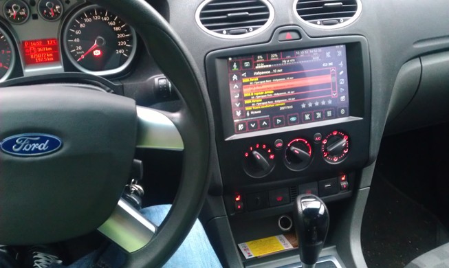 У фокусов штатное место рассчитано под 2 DIN магнитолу, так что за рамкой места ого-го.