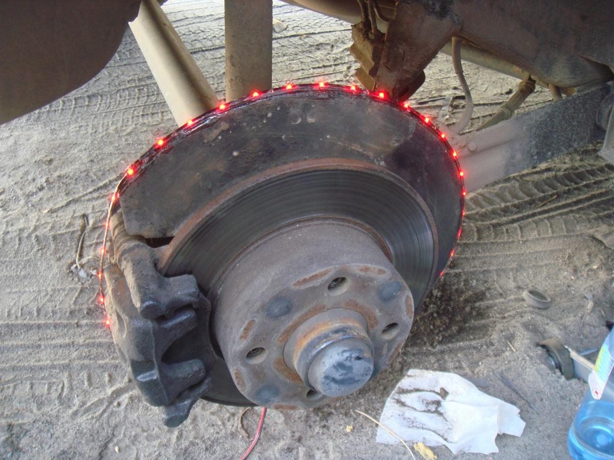 А как будешь колодки менять? Или от смены до смены потом заново и все равно надо будет как минимум один провод проложить (вот там внизу "красенький" лежит). Еще бы неплохо бы знать температуру этого кожуха а ленты светодиодные на любом радиорынке , там даже RGB с пультом есть