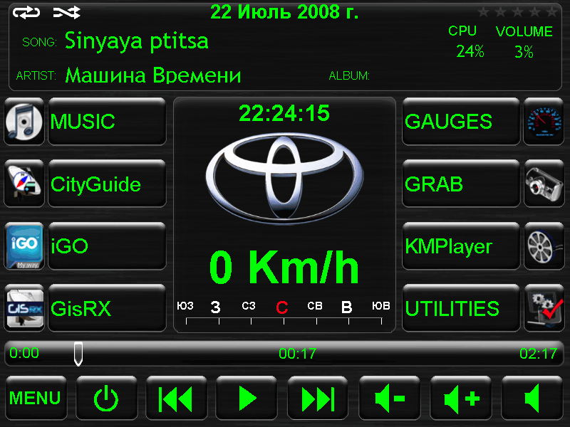Русские gps-флешки (спидометр, два компаса и спутники), мои скины для запуска CityGuide (External_GPS.skin), iGO (iGO.skin) и GisRx (gisrx.skin, сама gisrx взята