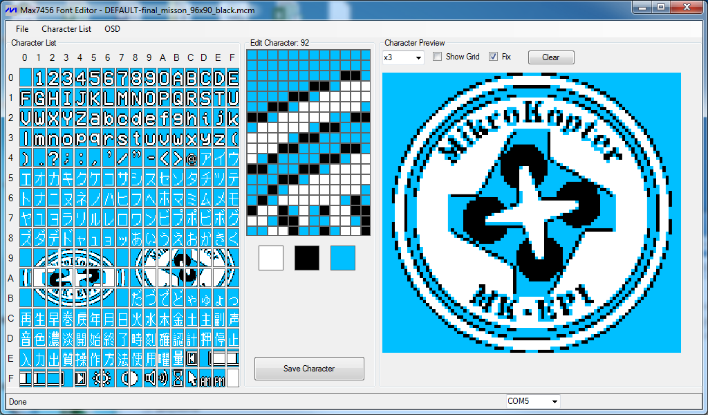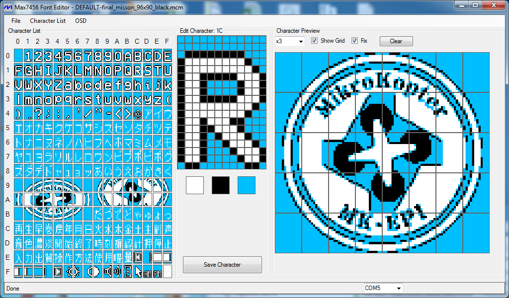 Выкладываю программку для редактирования символов MAX 7456. Вложение 17840 Вложение 17841