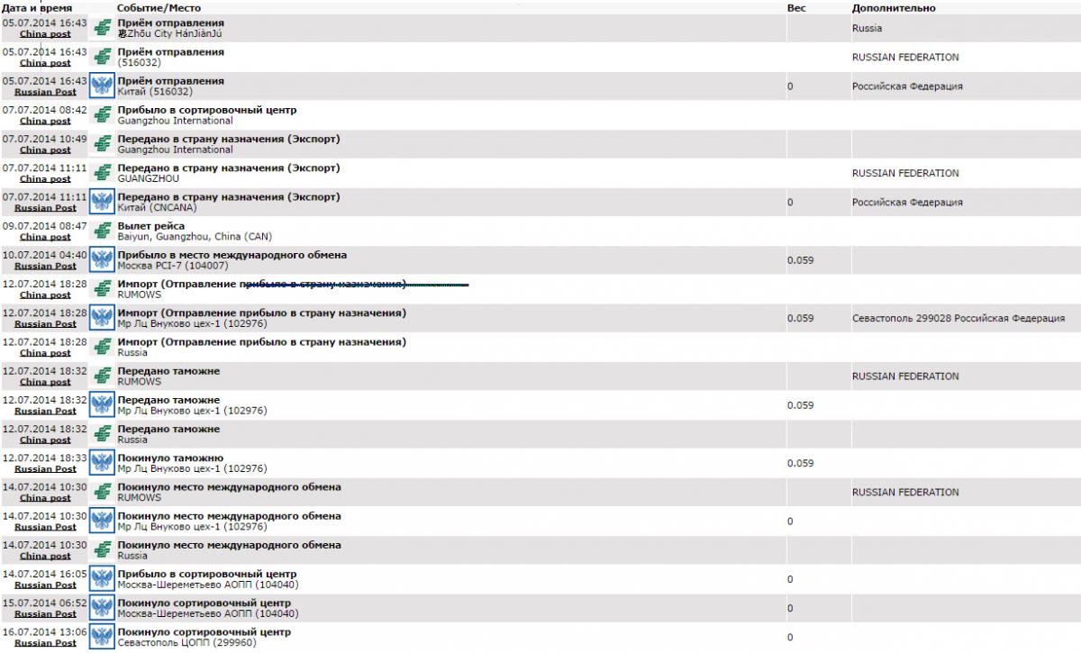 Немного офф топа (я потом исправлю этот пост, выложив что нибудь по теме) но раз уж затронута тема почты-выложу несколько треков из последних, тем более, что это в основном комплектуха для венатора. Некоторые логистические решения мне не очень ясны, но надо отдать должное - скорость доставки совсем не плоха. Кроме последнего скана. Ну там в принципе все понятно, посылка сгоняла из Москвы на растаможку в Самару, вернулась в Москву, а уж потом ко мне