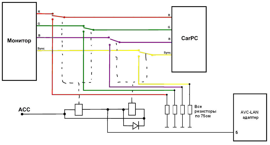 В новой версии адаптера появился выход № 3 (блокиратор RGBs), насколько я понял для того, чтобы экран штатного монитора оставался черным во время процесса загрузки винды и включался только после загрузки программы AVC USB Interface. Объясните пожалуйста, как это реализуется, лучше конечно в виде наглядной схемы.