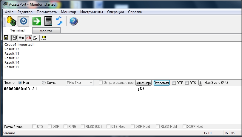 потом посылаю (АА 37) и еще раз скомандовал 5 команд для примера