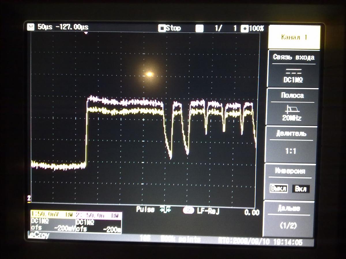 С посылкой сообщений опять проблемы. Все останавливается на первой же посылке ACK от головы. Но здесь хоть сигнал на TX+/TX- меняется когда я на драйвер высокий или низкий уровень выставляю. Может я чего с длительностью импульсов попутал. Завтра попытаюсь взять осциллограф посмотреть.