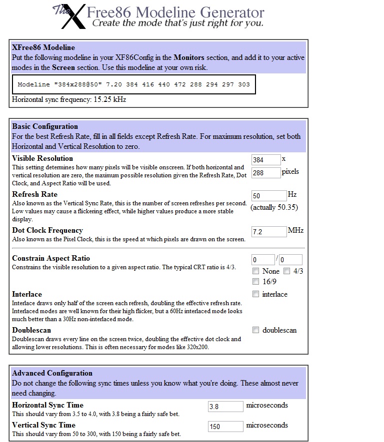 При нажатии кнопки "Install 15Khz" программа добавляет некие свои разрешения с известными одной ей параметрами, и вот что получается при выборе 382x288