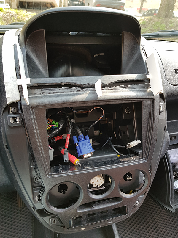 Есть также идея переделать консоль под два монитора, срастив с козырьком от калины2 (там в стоке 7 дюймов), и получить примерно следующее (фотошоп):