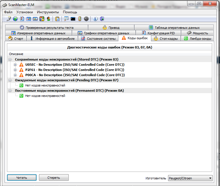 Доброго вечера! На днях купил ELM 327 подключил к авто Peugeot 307 SW 2005 г. в. , запустил диагностику. Показал две ошибки P0410 и P1153 , но вот стереть их ни как не получается, программа ScanMaster-ELM. Подскажите пожалуйста в чем причина?