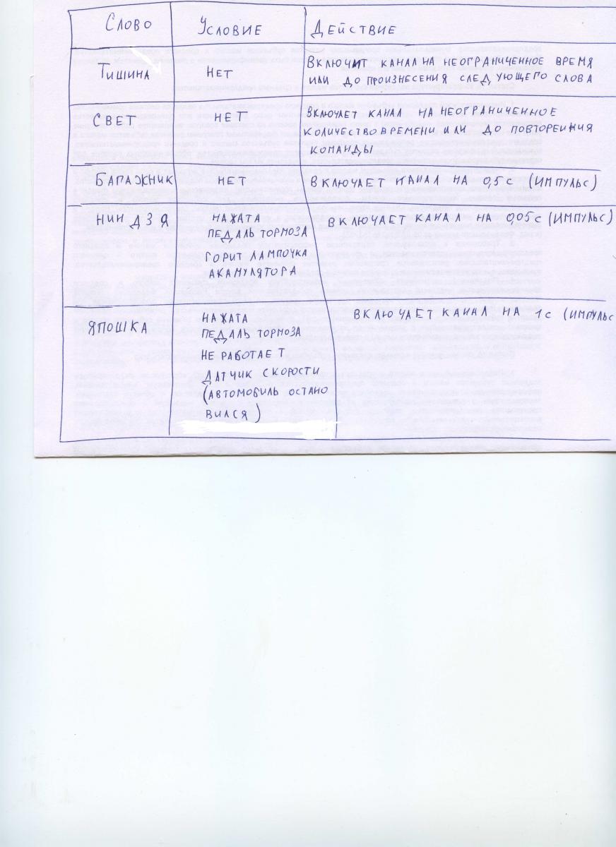 ТИШИНА- слово триггер без которого не будет выполнятся ни одна команда (при чем если команда не будет произнесена или опять слово триггер то канал будет включен неограниченное количество времени)