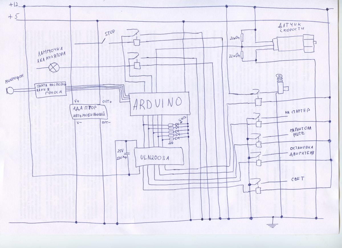чип а вот по датчику скорости я ведь действительно ошибся надо было через делитель напряжения а я там сделал охинею теперь исправил (по датчику скорости) разделил цепи 12 и 5 вольт расчитал резистор для SMD-шек:) Есть еще один вопрос при изучении мануала на плату распознования голоса там было написанно что очень много зависит от микрофона и от проводов (точнее их длинны) на которых висит микрофон в связи с этой поправкой было принято решение располагать плату в месте расположения микрофона т. е. в козырьке над головой вопрос если длинна проводов которые будут соединять ардуину и этот модуль увеличится где то до полутора двух метров это ни как не повлияит на работу и качество работы всей системы в целом????