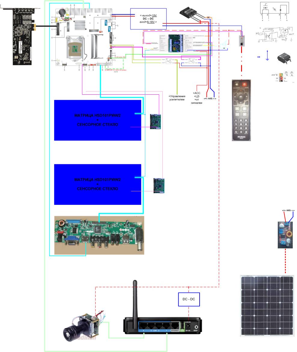 У многих в голове выскочит ошибка — "Почему именно вторичные?!" Ведь действительно, матрица является первым устройством которого касается глаз и палец человека, БП — первое устройство на сети питания от которого зависит на сколько мощная будет система. В действительности это так, а вот на стадии проектирования являются вторичными и зависят от выбора именно возможностей системы в целом, а также видения дизайнера интерьера во вред комфорта и безопасности управления авто, обычно это: то что оказалось бесплатным — из того и делаем!