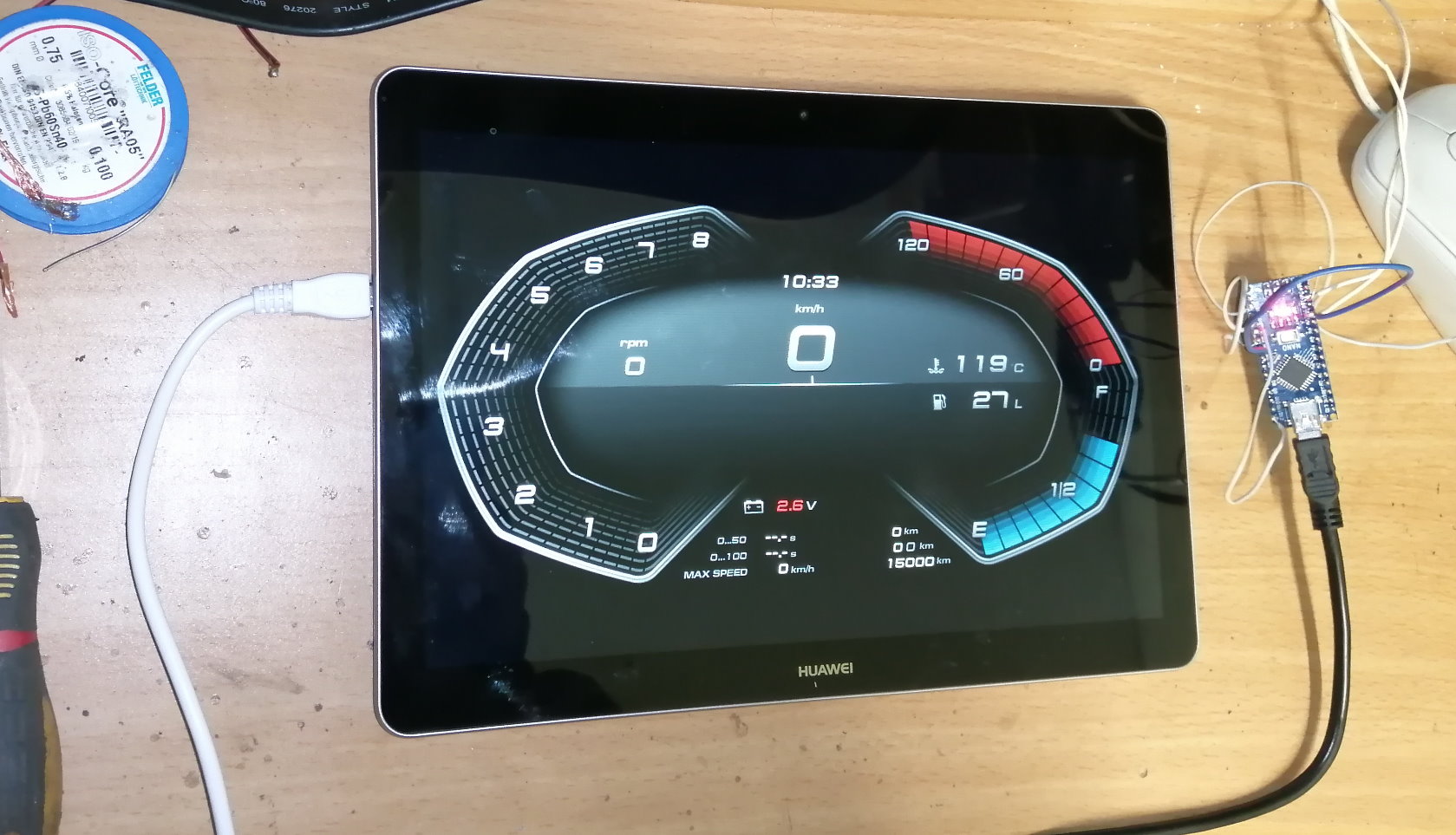 Опробовал прямое подключение Ардуины к планшету по USB, без Wi-Fi модуля. Подключил через штатный USB разъем Ардуины Нано. B скетче прописан serial0.