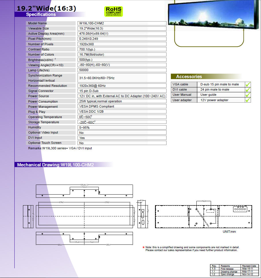 Nicos ищи AA192AA01/AA192AA51 ; Brand Name: Mitsubishi ; Type: TFT ; Size: 19.2" ; Resolution: 1920x360 ; Interface: LVDS