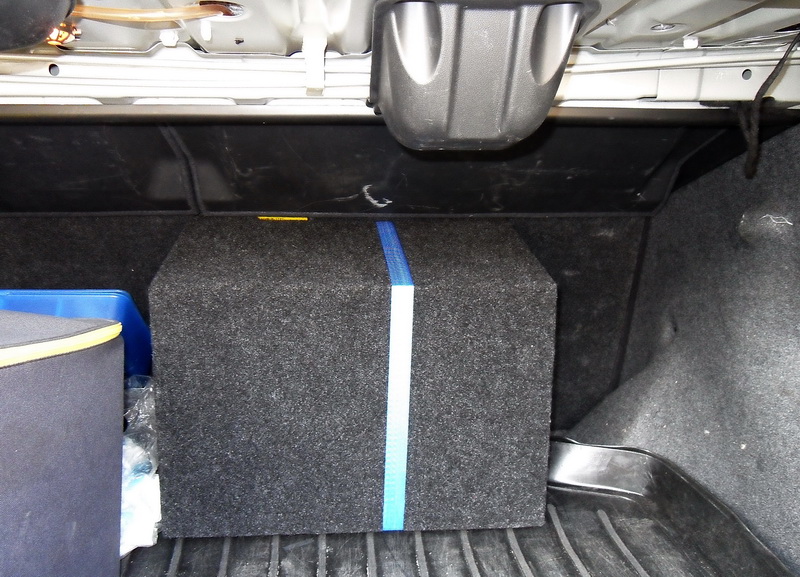 Установил на своё место, пока прикатывается, осталось подобрать кусочек карпета под цвет подлокотника и задрапировать дыру, чтобы саб не бросался в глаза: