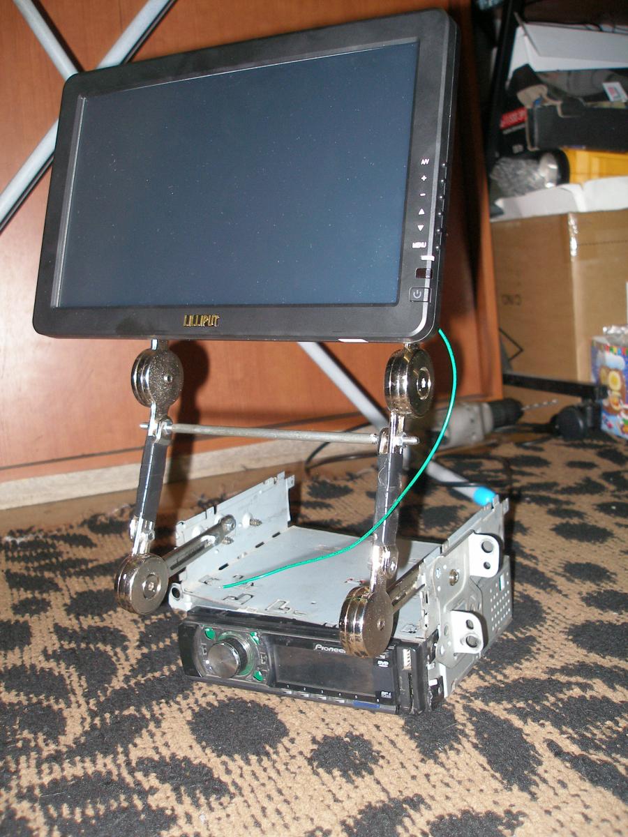 P.S. Моник в авто всего на 2-3 см (примерно) выше панели получился... и воздуховоды открыты на половину.