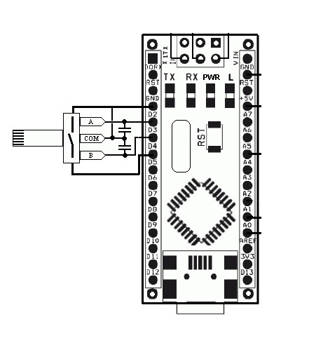 Дребезг на каких входах? Кондеры можно до 0,1мкф увеличить или подобрать компромиссный вариант, с 0,1 мкф могут быть пропуски при резком вращении