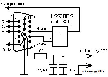 А когда я сказал, что подсоединил штатную синхру, то я имел ввиду то, что все остальное было отключено, т.е. R, G, B и даже RGBGND!!!