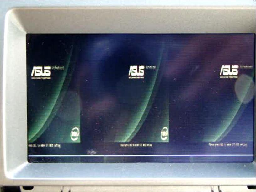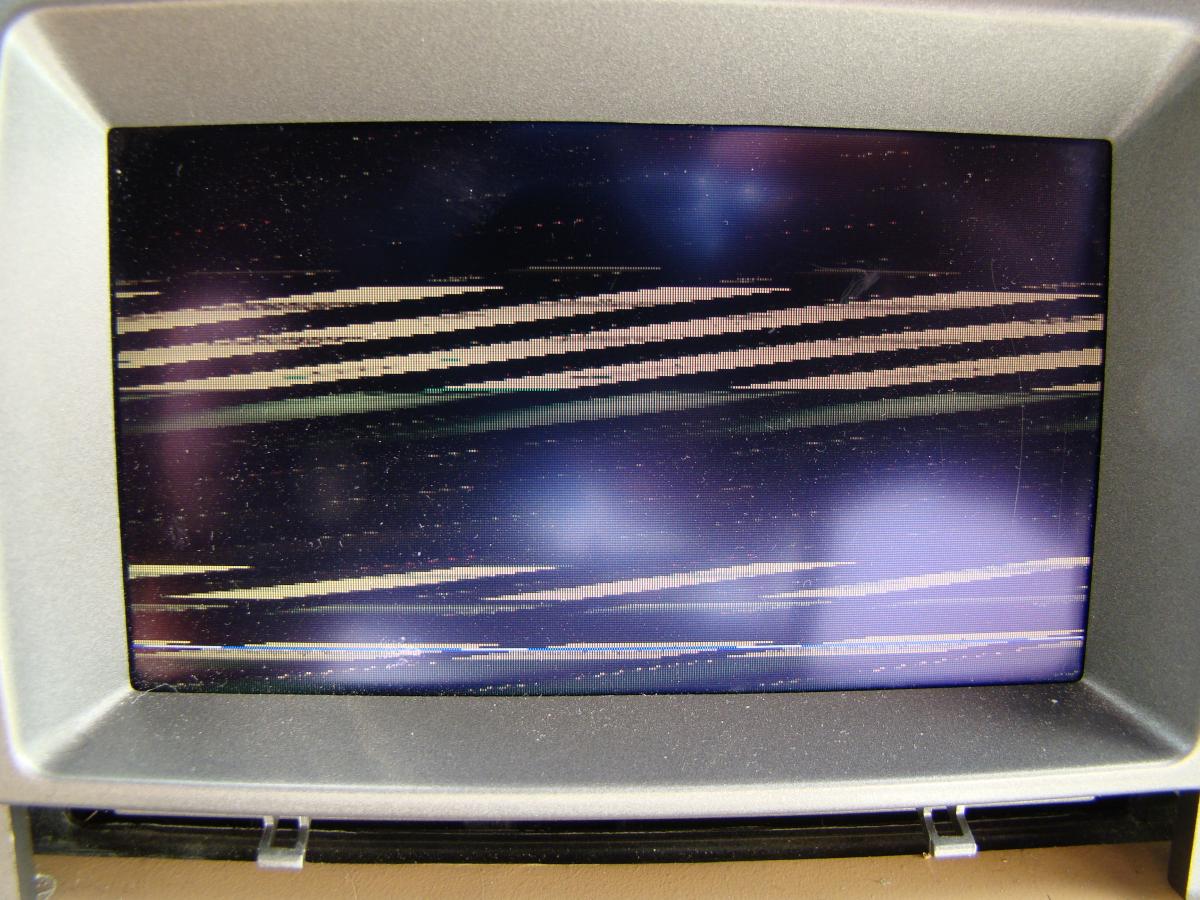 Параллельно с попыткой вывода нормального изображения стояла еще одна задача. Дело в том, что ранее в корпус штатного дисплея + блока управления климатом и еще не знаю чем была имплантирована замечательная плата, которая без напильника и паяльника позволила поиметь дополнительные входы сигналов RGBCsync + 3 композитных + S-Video + приоритетный над всеми остальными, в том числе и штатным, композитный вход камеры заднего вида. Кроме этого, плата, представляющая собой транскодер и коммутатор одновременно, в ручном и автоматическом режимах позволяет выполнять переключение систем цветообразования видеосигнала NTSC и PAL, а так же кучу других “прибамбасов”- зеркалирование по вертикали и горизонтали, масштабирование, выбор соотношения сторон экрана, автоматическое включение и выключение с задержкой carPC при включении головного устройства, управление всем этим при помощи одной сенсорной кнопки и т.д. И вот, при переключении того “горе изображения” из PAL в NTSC и обратно наблюдались следующие картинки: