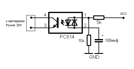 Сейчас оптопару впаяли точно такую же, комп включается но тут же выключается, почему то не размыкается кнопка. Может тут уже электронщики помогут?