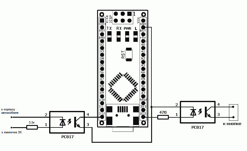 Это пример подключения сигналов автомобиля к контроллеру. Не нужно смотреть обозначения пиов
