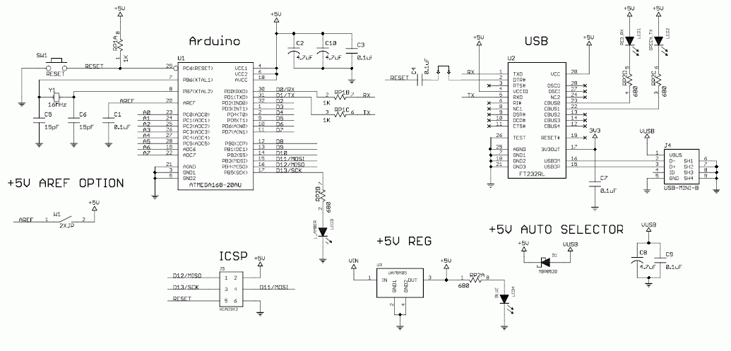 Смотри схему Arduino Nano