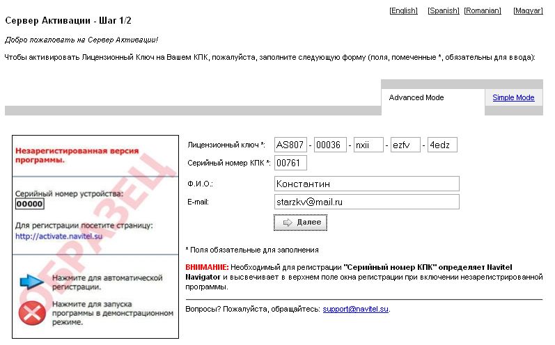 Скиншоты регистрации самого Navitel Navigator.