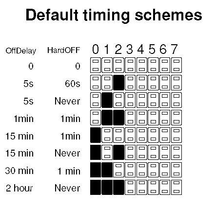 Установить тайминги включения (OFFDELAY) и выключения(HARDOFF)