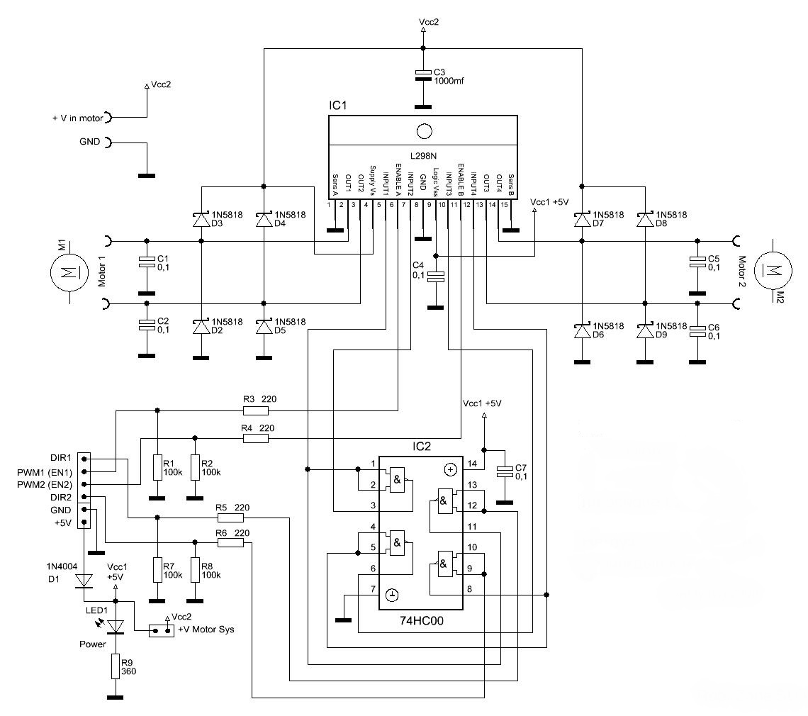 Извеняюсь не обозначил. U1 L298N U2 SN74HC00.
