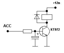АСС понятно, +12 вольт понятно. Минус на реле появляется через транзистор КТ972 когда кондиционер зарядится до 12В? я правильно понял?