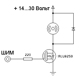 Это вентилятор печки, (может на схеме не все указал) который ест довольно много.Правда я ток не замерял, но предохранитель стоит штатный на 30А.Двигатель там должен быть коллекторный и при запуске ток великоват. Тема на форуме по этому поводу была, вроде про климат. Мосфет будет ли полностью открываться без драйвера?Боюсь спалить иначе можно транзистор.