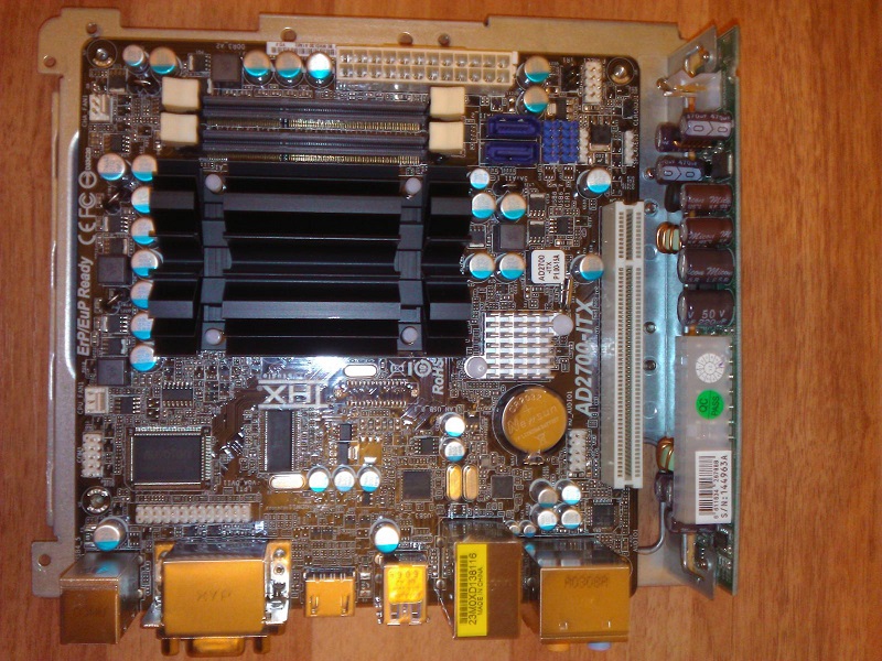 Основой послужила мат. плата ASRock AD2700-ITX, с предустановленным процессором Intel D2700 (2 ядра, 2,13 GHz) и пассивным охлаждением.
