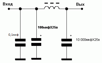 вот же схема или на подобе в яндаксе полно (простой LC фильтр постояннго напряжения)Цитата: