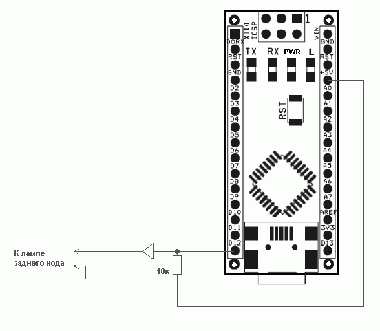 Я правильно понял что на Arduino nano v7 +12 с лампы заднего входа можно завести на pin HV12напрямую без диода, или все равно ставить его?